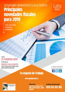 Este jueves 21 de Febrero podrás asistir a nuestro desayuno workspaces con una jornada sobre las Principales novedades fiscales para 2019.